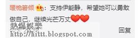 怎麼看都看得出是篇勵志文,有網民讚她的文筆好,而與她一起參演節目的大陸女星張萌亦有留言為伊能靜打氣:「歲月只在你身上留下了經歷,卻沒在你臉上留下痕跡,衝啊!靜靜子!」伊能靜亦回覆對方:「愛你,我的萌萌子,一起享受舞台吧!」