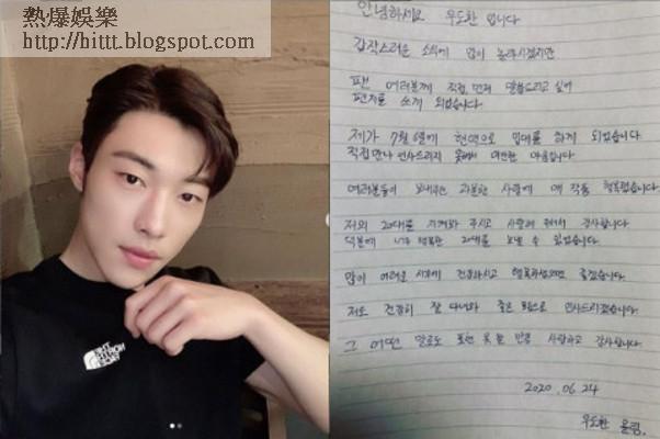 另外,憑韓劇《The King:永遠的君主》而人氣急升的27歲男星禹棹煥,昨日在IG公開親筆信,宣佈將於下月6日以現役兵身份入伍。