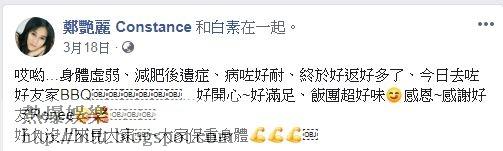 近期鄭艷麗因厭食症要入ICU留醫,其實早於去年3月,她的健康已出問題,當時更在FB留言:「身體好差,希望身體唔好再繼續差落去。」事隔三個月後,情況沒好轉,她寫道:「我身體狀況好差,體重又跌得好利害。」