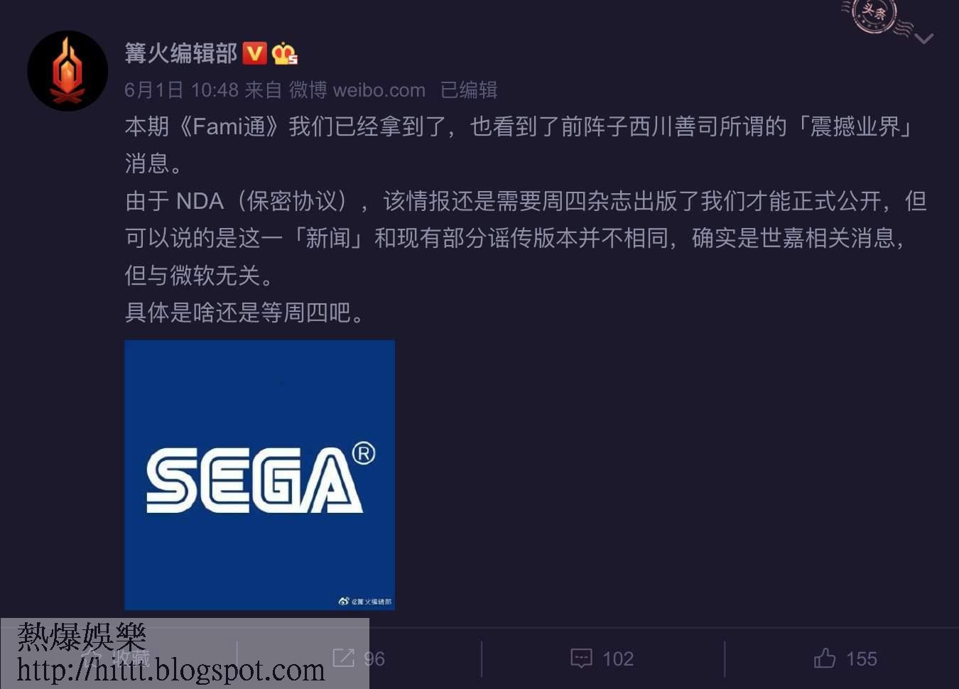 外國多間傳媒報道 Microsoft 將會收購 SEGA 的消息,傳聞鬧得熱哄哄。然而,昨日(1 日)有內地遊戲情報表示收購消息是假的,因他們已經收到最新一期《FAMI 通》週刊,並知道了關於 SEGA 的消息,但基於保密協議沒有辦法公開,只是強調事件跟 Microsoft 無關。
