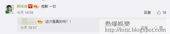 「出事」後,郭采潔亦隨照刪掉所有反擊網民的post,到晚上更跪低向女網民道歉:「抱歉一切」,但該女網民卻反問:「這次是真的嗎?!」