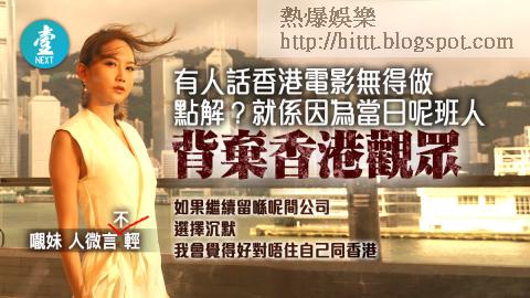 睇番演藝圈,所有人都話香港電影無得做,點解?就係因為當日呢班人,係佢哋背棄香港觀眾,佢哋選擇北上發展,而本身點解可以咁吃香?係因為佢哋將香港技術、創新帶返內地。但佢哋而家已經被同化,無論劇本、創作或者製作上嘅思維,都已經被同化。