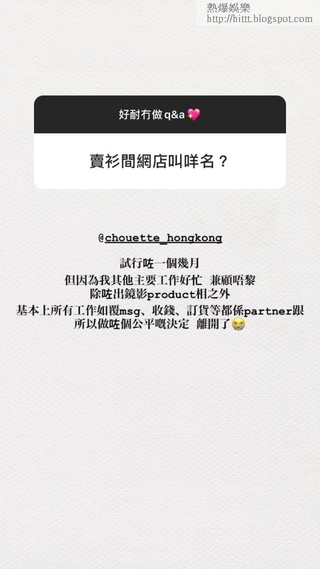 至於當事人Flavia,對於被指賣淘寶貨,昨晚她在IG story中回答網民問題時,否認其事說:「網店初步試行咗接近一個月,撞正疫情令到我哋冇得直接去韓國入貨,所以入貨全部單件入,唔係批發入,而入貨價每件全部3位數字以上。」她又指過往在淘寶中亦有人抄韓國廠商的款式,堅稱自己從來冇用淘寶入貨。另一方面,她卻指自己工作太忙關係,無時間打理網店,因此早前已和拍檔分道揚鑣。