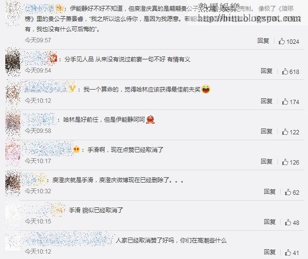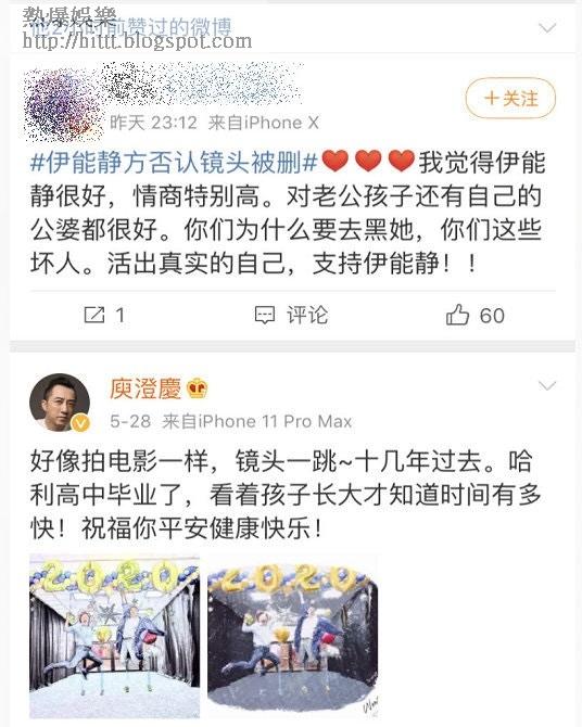 面對排山倒海的惡評,但有網友就發文力挺伊能靜:「我覺得伊能靜很好,情商特別高。對老公孩子還有自己的公婆都很好。你們為什麼要去黑她,你們這些壞人。活出真實的自己,支持伊能靜。」沒想到這一則貼文引來庾澄慶目光,更被發現點讚了該條微博,疑默默地力挺前妻。不過事後他取消了該則點讚,被懷疑可能只是不小心按到而已。但無論是有心或是不小心,庾澄慶多年來都沒有在外面批評伊能靜入任何不是,被網友稱讚根本是圈中最佳前夫代表。