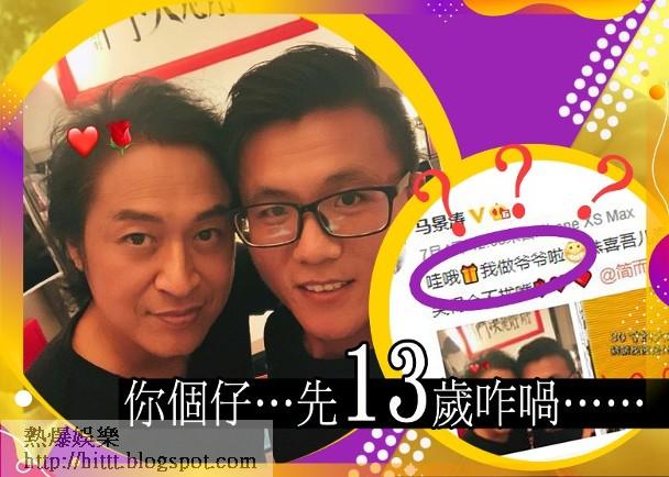 佢晒出一張頭貼頭合照,興奮發文指:「哇哦!我做爺爺恭喜吾兒海濤當爸爸」網友就即刻去恭喜佢啦,不過亦有心水清網友指有過兩段婚姻嘅馬景濤,同第一任妻子唐韻生下女兒馬世嬡,再與第二任妻子生下2個兒子馬世天、馬世心,最大嘅仔仔依家先得13歲,咁快就做人老竇?