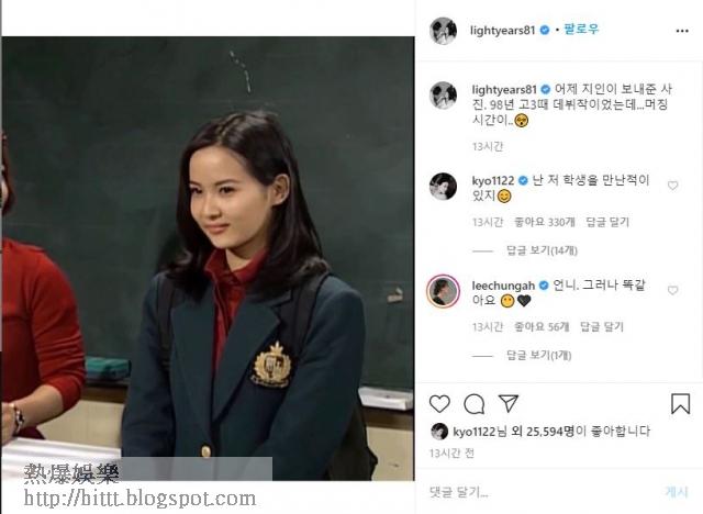 當年年僅17歲的曹汝貞十分清純,其樣貌亦變化不大,而網民及fans都紛紛留言大讚她美貌多年不變,同時更引來女神宋慧喬出動,喬妹亦搶住留言:「我見過那個學生吧。」事實上,喬妹當年亦有份出演《我如何呢?》,並因而與曹汝貞成為朋友。而女星李清娥亦大讚曹汝貞美貌依舊:「姐姐,簡直一模一樣。」