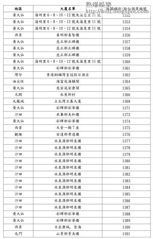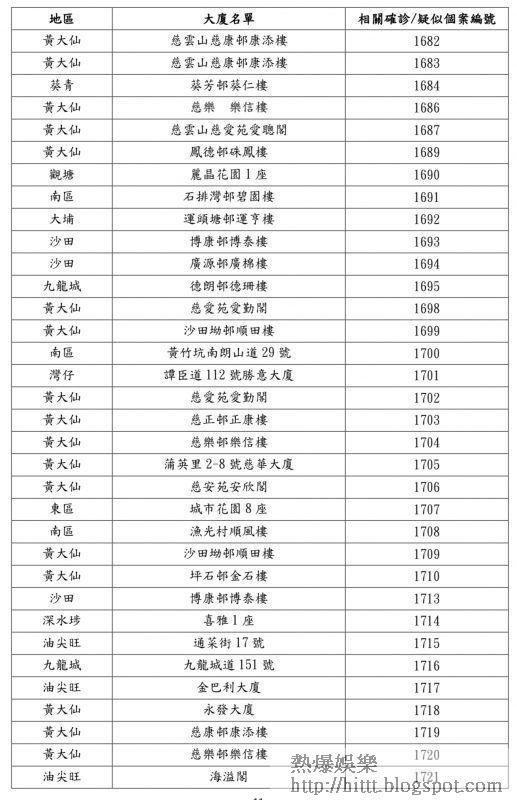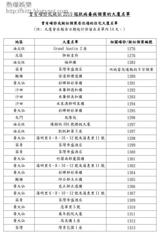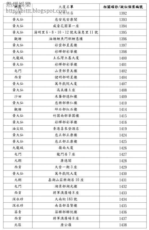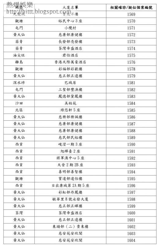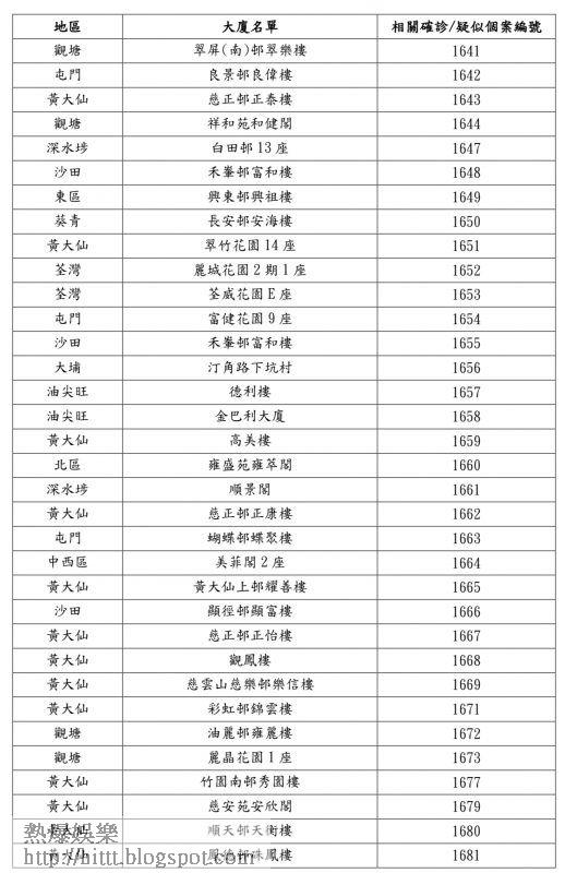 衛生防護中心列出最近14日患者或疑似確診者的居住大廈及曾到訪大廈,在最新一輪的名單,當中以九龍東區最多。