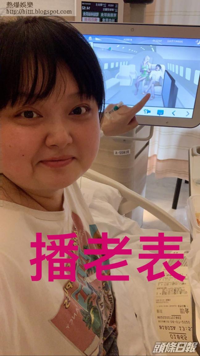 其後她再更新IG,又貼出在醫院睇主演劇《老表,你好hea!》,細細粒笑謂:「係(喺)醫院睇老表,笑到隔離牀係甘(咁)叫細細粒,又係一次重溫老表你好Hea」她仲跟電視機中的自己Selfie,好在見細細粒都幾精神,應該身體冇乜大礙啩。