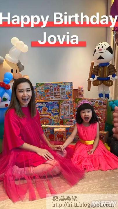 關心妍(Jade)個囡囡楊榮心(Jovia)尋日四歲生日,因為Jovia好鍾意麵包超人,為○氹囡囡開心,做阿媽嘅當然諗盡計仔,首先搵公司吹咗好多個麵包超人角色嘅吹氣公仔,然後再約埋長輩及親友齊為心心開生日會。