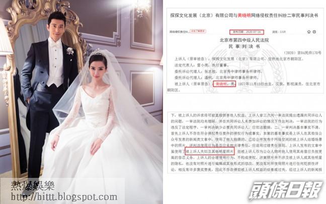 黃曉明Baby婚照遭盜用 判決書證夫妻關係沒變
