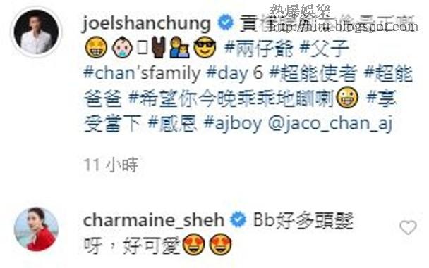 山聰翹晒腳坐喺梳化,一面認真咁睇劇本,而Jaco就好乖咁瞓喺佢隔籬,山聰話:「貢(咁)樣睇劇本係最正嘅!希望你今晚乖乖哋瞓喇🤪!」佘詩曼就大讚可愛:「Bb好多頭髮呀,好可愛😍😍」唔少人都話咁樣好容易分心喎,又話從小栽培肯定青出於藍呀!