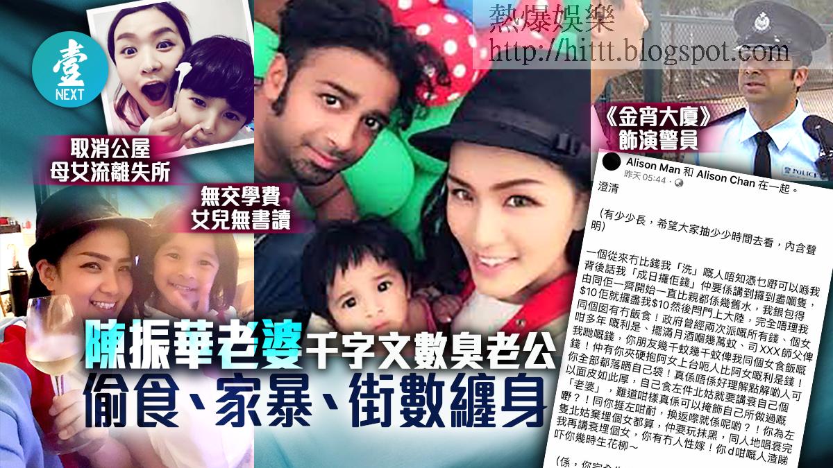 在香港土生土長的印度裔演員陳振華(Ricky),曾演出不少大台劇集及電影,6年前與港人Alison結婚,二人婚後育一女。不過,日前Alison在網上發文炮轟Ricky,指Ricky在內地結識強國妹而拋妻棄女,亦未有為女兒交學費令女兒失學,甚至曾對女兒家暴。