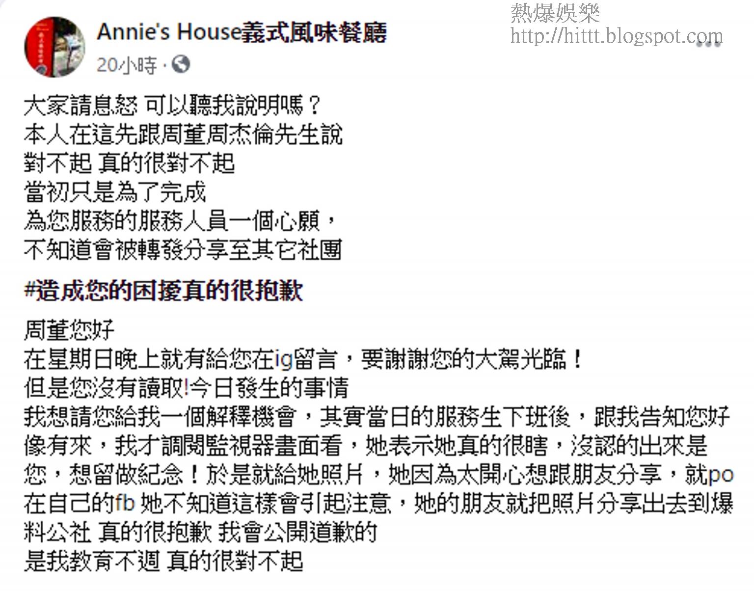- 【影得唔靚先大鑊】周杰倫被餐廳「偷拍」兼放上網嬲到震 店東最終發道歉聲明