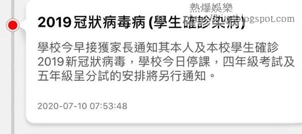 荃灣天主教石鐘山紀念小學昨有一名小六學生被列為確診者的密切接觸者,學生及家人已獲安排接受隔離,3人結果呈陰性,但為安全起見,學校決定今停課一日以作徹底消毒及清潔,學校亦會通知校車公司為校車作徹底消毒及清潔。另外,學校原定於今舉行的五年級呈分試將改期進行。