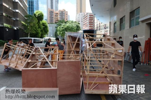 今早約10時,已見有大貨車駛到殯儀館,工作人員開始搬運木材、鮮花、柱狀物體等大量物料,以作佈置靈堂之用。據知何家總共包下地下、一樓及二樓,足夠容納逾千人,暫時見地面大堂有大一半位置用來擺放未處理的物資,殯儀館職員吩咐搬運工人將木材等裝飾物送上一樓和二樓,白玫瑰、鮮花、綠葉植物主要搬入地面靈堂。