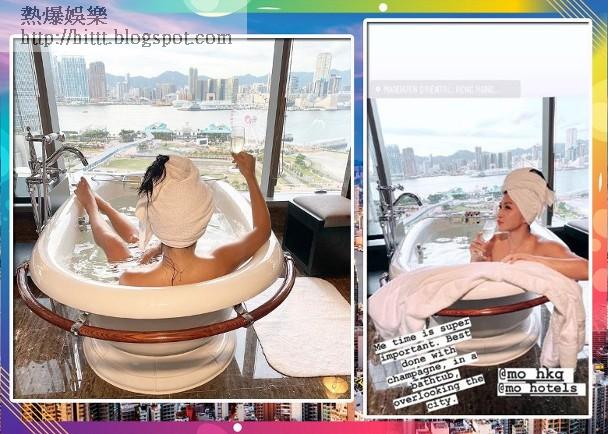 佢留言:「在整個城市面前光脫脫浸浴,有種無與倫比的感覺。」佢仲上載咗美食相,話要喺六點先食晚餐,趕得切廳餐關門。