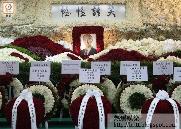 各房子女孫兒亦相繼到場,包括三房女兒何超雲、何猷啟與太太齊嬌,何超蓮則與男友竇驍十指緊扣同行;還有四房何猷亨、何猷君與太太奚夢瑤和何超欣等。而與賭王共事多年的澳博控股行政總裁蘇樹輝,今日負責主持喪禮儀式,而足總會長、霍英東集團主席霍震霆則會在喪禮上致悼詞,其他出席的政商賢達及名人,還有商人林建岳、胡文新、霍震寰與其兒子、政制及內地事務局局長曾國衞、入境事務處處長區嘉宏、地產及建造界議員石禮謙、英皇集團主席楊受成幼子楊政龍、息影女演員林青霞等。