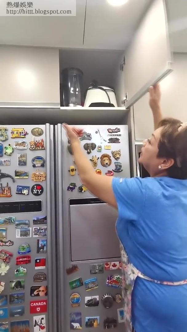 肥媽拍片上網,解剖佢嘅特大廚房,2個雪櫃擺落醃好咗嘅肉類、蔬菜、牛奶、蛋糕等,仲話仲有一個大冰櫃放咗喺出面,攞啲雪藏食物。又有一個小嘅雪櫃專放調味料。肥媽話因為經歷過1967年暴動,當時真係冇嘢食,自此之後都會放定1個月嘅糧,所以有大量乾糧罐頭、米、米粉、麵及意粉等,以備不時之需。