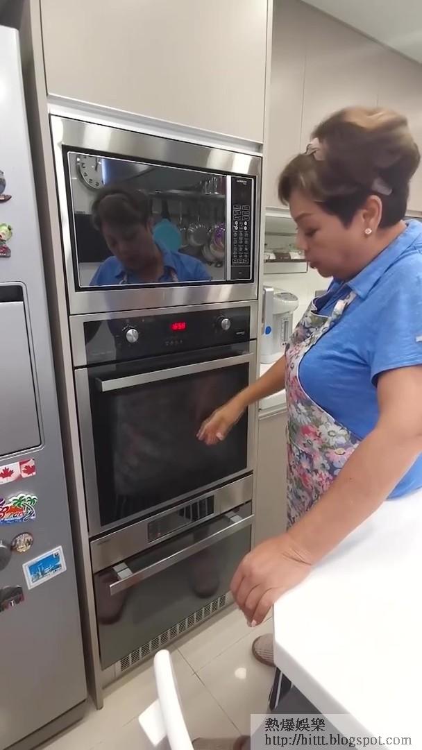 片中見到肥媽嘅煮食用具齊全,除咗2個爐頭、仲有唔同類型嘅電器,焗爐、蒸焗爐、食物風乾機等。又有大量煮食工具,幾十個暖水壺、烘焙用品及茶葉的櫃筒等。之後仲有一個9層高嘅櫃,櫃上面有不同大小嘅盒,放唔同嘅香料、花椒八角、芝麻、蜜棗、陳皮、片糖、雪耳等。肥媽教路要用盒擺好每一款食材,再貼上標籤,咁就更加容易搵。