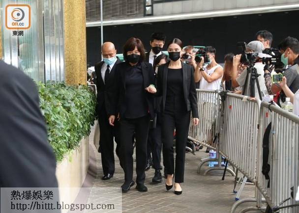 四太梁安琪(左)及女兒何超欣(右)到達靈堂。