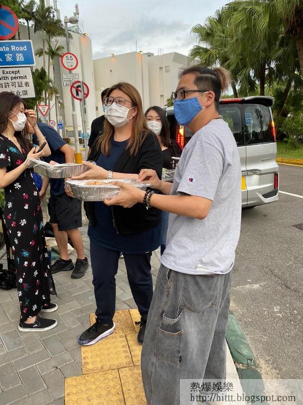 天時暑熱,為免大家辛苦,陳浚霆買了大量飲品給傳媒,樂易玲又請記者食嘢,認真識做!