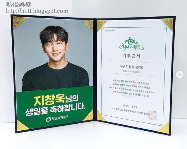 韓劇《奇皇后》男星池昌旭將於後日踏入33歲,趁着偶像生日,其fans就以池昌旭的名義,向慈善機構捐贈565萬韓圜(3.6萬港元)及40公斤大米,用以幫助殘疾兒童及低收入人士家庭,池昌旭隨即在IG上載機構發出的感謝狀,留言答謝fans:「為了紀念我的生日,大家一同做善事,大家都很帥氣,謝謝大家。」