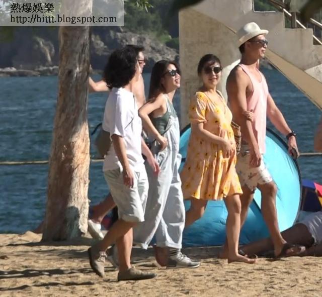 逗留約1小時,友人負責先付款簽單,之後四人便一齊落沙灘行了約10分鐘,其間Owen好細心照顧住老婆,全程拖實Jackie的手,十分浪漫,之後便駕車離開。