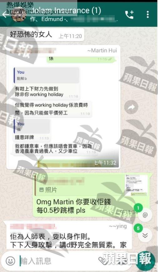 至於提及的涉嫌恐嚇,讀者提供和林作的WhatsApp對話截圖,當中有林作罵Vanessa:「你呢種垃圾,我會給你一個教訓」、「我不會放過你」、「等收律師信。你不賠償跪下來道歉我不會停手」、「我會持續搞你」、「我會斷你米路」等,最後林作要求她出道歉post,否則會採取法律行動。對話當中,Vanessa曾經向林作道歉:「我覺得做人無需要咁樣」、「你太過於激動」、「如果我得罪你,好。我道歉,對不起」、「但我不會找你簽保單了,抱歉」。