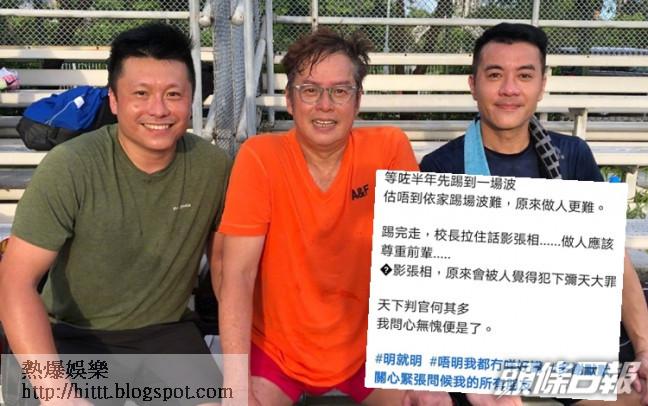 之前譚詠麟(阿倫)跟明星足球隊成員陳百祥(阿叻)、梁漢文(Edmond)和李克勤等踢波,同場還有警察公共關係科前總警司,現任葵青警區指揮官謝振中。事後阿倫在微博上載與謝振中和梁漢文合照,指當天他轉踢中場做傳送工作,而謝Sir和梁漢文則各入5球。不過該張合照惹來唔少聲音,梁漢文的instagram被洗版式留言。