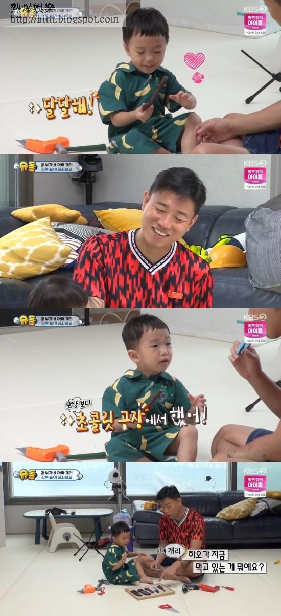而Gary和愛兒姜河昊出演的KBS人氣育兒節目《超人回來了》於前日播出,當中Gary就用朱古力教導兒子分辨螺絲批等工具,大晒育兒的秘訣。