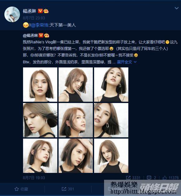 李榮浩罕讚「天下第一美人」 楊丞琳相隔10年再剪短髮