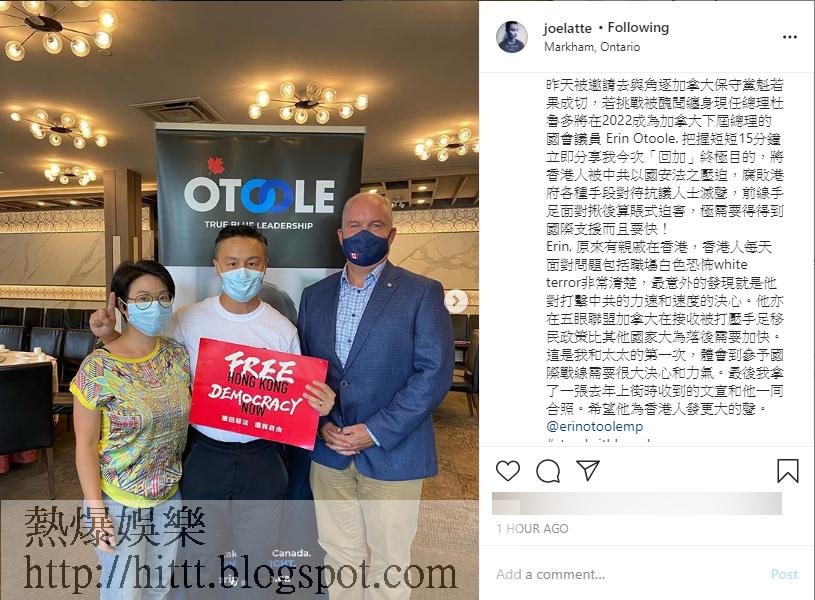 相隔半個月有多,鄭敬基終於有「成績」!今日他在社交網以圖文交代自己做的事,他透露昨日獲邀去見加拿大國會議員Erin Otoole,鄭敬基把握15分鐘的會面時間,向Erin說明自己今次「回加」的終極目的,鄭敬基說:「將香港人被中共以國安法之壓迫,腐敗港府各種手段對待抗議人士滅聲,前線手足面對揪後算賬式逼害,極需要得得到國際支援而且要快!」
