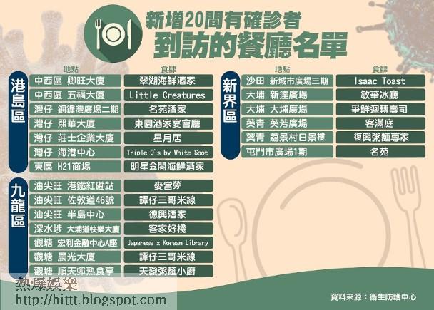 新增20間有確診者到訪的餐廳名單