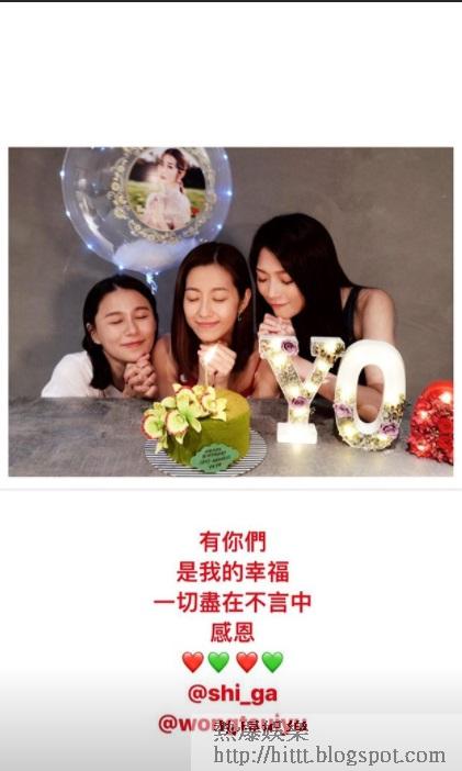 「索媽」陳自瑤(YoYo)剛踏入39歲生日,雖然被指無視老公的祝福留言,但對好姊妹卻相當重視。YoYo因為拍攝《那些我愛過的人》而與黃翠如和連詩雅成為「金蘭姊妹」,生日前夕已跟連詩雅切過一次蛋糕,過了生日再相約翠如一起慶祝,見她們送上一個寫住「Sexy Goddess (性感女神)」的字牌蛋糕,齊齊閉緊雙眼許願,果然姊妹情深。