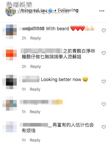 劉鳴煒專心海洋公園及青年發展委員會兩份工,近月在社交平台都見活躍,今日他40歲生日就出了一個帖文,貼了兩張近照,一張是長滿鬍鬚,另一張是剃鬚後的樣子,更以英文留言笑言有中年危機,要剃鬚「回春」:「First act of my latest mid-life crisis」,就是由有鬚變冇鬚,感覺確是後生了不少。網民對於他的new look就有不同意見,有人留言:「之前青靚白淨咪幾靚仔做乜無端端學人留鬚」、「再富有的人估計也會有煩惱」,「like your 『頹樣』 , more down to earth 『貼地』」、「看久了好像覺得留一點也不錯,感覺比較成熟」等。