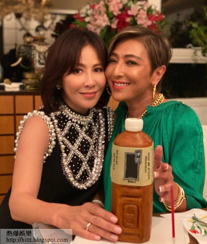 昨日是上山詩鈉56歲生日,有劉嘉玲為自己慶祝生日,劉嘉玲的IG動態上載一張二人嘴貼近嘴的相片,表示要為「小野貓」慶祝,二人盛裝打扮如此親密,但細看二人的嘴都是遷就角度,限聚令下都不會因太興奮而亂玩。劉嘉玲更悉心為上山詩鈉訂製樽裝茶飲品的蛋糕,十分有趣。