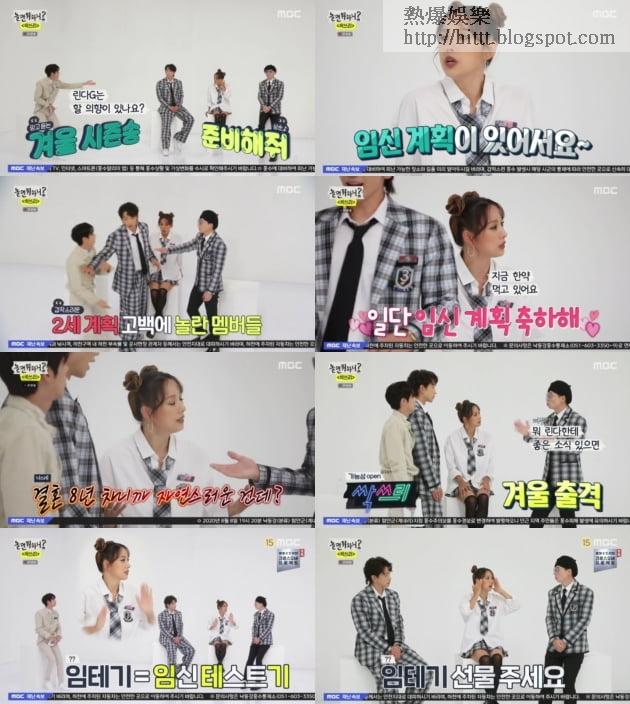 昨日節目提到「SSAK3」組合活動接近尾聲,並有意在冬天繼續活動,李孝利就突然表示自己到時是否能參與活動,並說:「我而家有懷孕嘅計劃,如果到時冇懷孕就會一齊活動。」即時令Rain和劉在錫等人大感吃驚,不過李孝利就直言她與李尚順下月1日結婚7年,有懷孕的計劃也十分正常及自然,之後李孝利更搞笑提議他們可以送驗孕棒給她作道別禮物,引發全場爆笑。