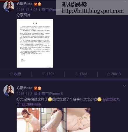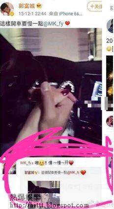 近日有大陸網民發現,方媛悄悄地刪除了當年她轉發城城公開示愛的帖文。2015年12月1日,城城首度大方認愛方媛,在微博貼上二人在車上手拖手的sweet爆相片,留言:「這樣開車要慢一點 @MK_fy」,方媛緊貼轉載後回覆:「嗯!慢-慢-開(心形圖案)」。