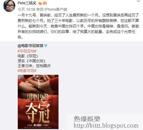 事隔大半年,今日陳可辛在微博宣佈,其新作《奪冠》將於9月30日的國慶檔在大陸上映,他先寫︰「謝謝大家206天的等待,9月30日影院見!」之後再帖文,有感而發寫︰「一月十九號,首映前,經歷人生最煎熬的一個月。沒想到首映後再經歷了更煎熬的七個月。拍了三十年電影,以前歷盡的所有酸甜苦練,在這都不算甚麼。能熬到今天,就靠中國女排四個字。中國女排是精神,是信仰。謝謝所有的女排姑娘們,你們的故事,給了我莫大的能量,去完成這個光榮任務。」
