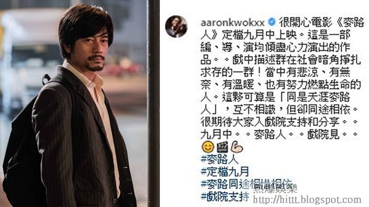 城城今午在社交網貼文,他寫︰「很開心電影《麥路人》定檔九月中上映。這是一部編、導、演均傾盡心力演出的作品。」城城不忘hard sell自己部戲,簡介《麥》片的故事︰「戲中描述一群在社會暗角掙扎求存的一群!當中有悲涼、有無奈、有溫暖、也有努力燃點生命的人。這夥可算是『同是天涯麥路人』,互不相識,但卻同途相依。」等了大半年,終於可以上映,城城表示︰「很期待大家入戲院支持和分享。九月中。麥路人。戲院見。」