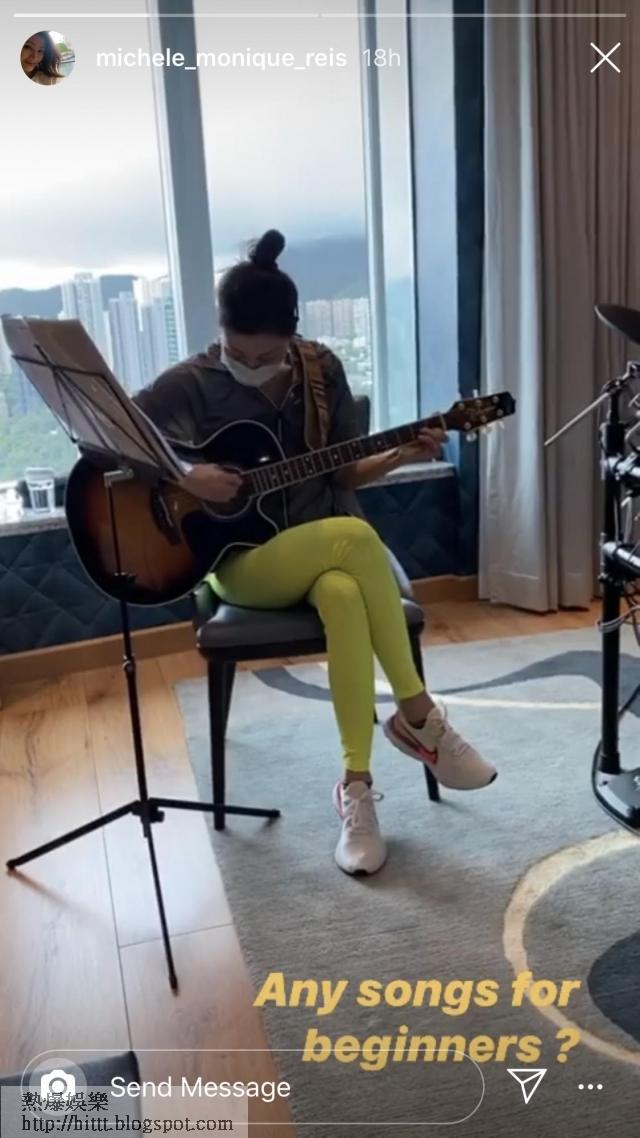 李嘉欣近日留家除了湊仔、玩狗仔外,今日就在IG story 分享自己學彈結它,她着住居家運動服、波鞋、戴住口罩彈結它,更寫上 any songs for beginners?表明自己新手學音樂,等朋友介紹易彈的歌曲。除了學音樂,經常做運動的她又除罩打乒乓波。