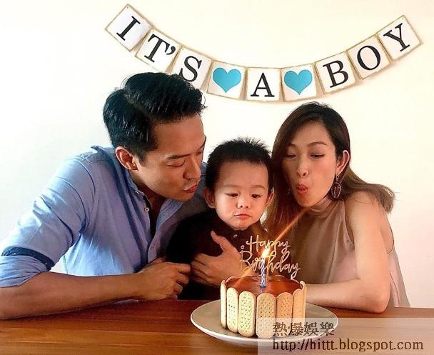 前無綫藝人宋熙年(Sarah)與丈夫陳智燊(Jason)於今年3月宣布家中將添一新成員,由一家三口準備成為一家四口。昨天是Sarah生日,Jason將與兒子為太太慶生的照片上載到社交網,相中背面的掛飾,更暴露了太太正佗B仔。