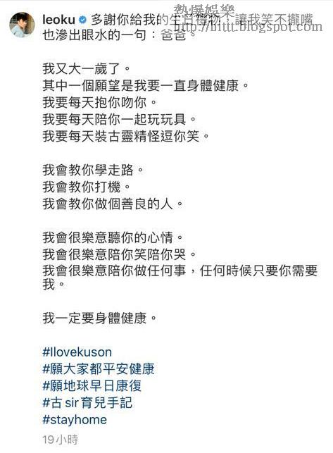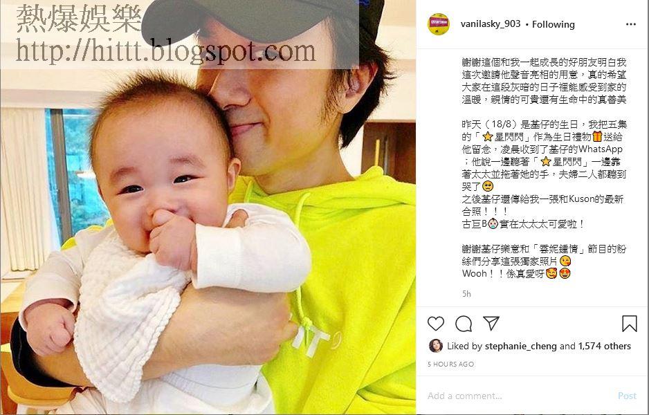 另一方面,古巨基昨日同樣踏入48歲,今年生日對基仔而言,份外有意義,因為他在今年4月升呢當人父,太太為他下誕下兒子Kuson,基仔在IG貼了一段兒子叫BaBa的短片,他表示為了可以見證兒子成長,他的其中一個願望是要一直身體健康:「我會教你做個善良的人。我會很樂意聽你的心情。我會很樂意陪你笑陪你哭。我會很樂意陪你做任何事,任何時候只要你需要我。我一定要身體健康。」而好友Vani在商台主持的節目,製作了一個小環節送給基仔作為生日禮物,基仔回覆被感動了,其後他還送了一張與Kuson合照給好友。