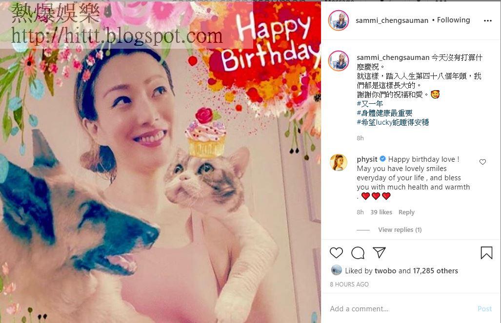今天是鄭秀文(Sammi)的48歲生日,Sammi凌晨在社交平台出post留言:「今天沒有打算甚麼慶祝。就這樣,踏入人生第四十八個年頭,我們都是這樣長大的。謝謝你們的祝福和愛。#又一年 #身體健康最重要 #希望lucky能睡得安穩。」不少好友留言祝賀,其中包括:袁詠儀、薛凱琪、張繼聰和梁漢文等等。有一段時間沒有新歌推出的Sammi,在生日前夕透露是時候準備新歌:「算算手指,《我們都是這樣長大的》已經是一年前的作品。不能偷懶,是時候準備新歌了。#今天興緻高昂在唱自己的歌#自己是自己的聽眾#我們都是這樣長大的#新歌幾時有得聽」。