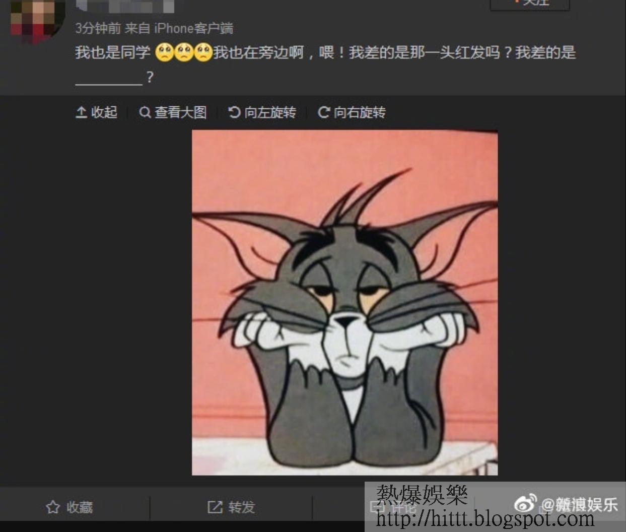 - 那個當日有同行的朋友在微博發文留言:「我也是同學,我也在旁邊啊,餵!我差的是那一頭紅髮嗎?我差的是____?」 間接替好友周冬雨否認戀情!