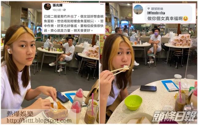 噚晚輝哥喺社交網站上載圖片,留言:「已經二個星期冇外出了,個女話好想食碗魚蛋粉,世(勢)估唔到咁樣食魚蛋粉、苦中作樂、好笑也好傷感、要相信疫情很快過,齊心就是力量,明天會更好。」網民都羨慕咁話:「做你個女真幸福!」限聚令下張兆輝同朋友一齊坐,就算張兆輝同囡囡分枱坐,但兩父女一條心,眼見個女食完魚蛋粉,又追加西多士及飲朱古力奶咁好胃口,真係心到甜埋。輝哥亦好守規矩,食完嘢即戴返個口罩先繼續同朋友吹水,雖然外出用膳,但防疫意識好高。