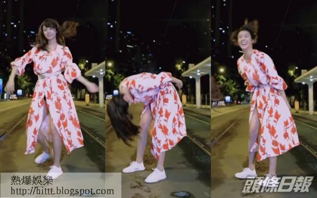 蔡思貝為撐閨蜜王君馨的新歌《Casada》,專誠夜深玩街拍,戴上長假髮扮王君馨跳舞,但搞笑是一個彎腰揈頭,假髮隨即飛甩,連她也笑到難自控,亦成為整條跳舞片的亮點!