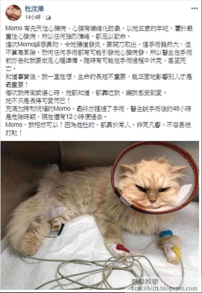 事實上,阿澤和老婆阿田早於Momo五歲時已得悉牠患有先天性心臟病,2018年Momo因為貪玩,誤吞阿田健身帶上的膠致腸胃發炎,需要做手術取回異物,當時兩公婆已經相常擔心,因為醫生指Momo心臟病屬於較嚴重,有機會在手術過程中休克甚至死亡,幸好Momo最後手術完成,阿澤曾經說:「姓杜的,都異於常人,非同凡響,不容易被打敗!」但經過這一役,阿澤悟出人生道理:「其實生命從來不短促,活着亦不過一刻!過去不能留,未來不能得,除了當下,還有什麼?感恩有這種修行,讓我好好去愛......」