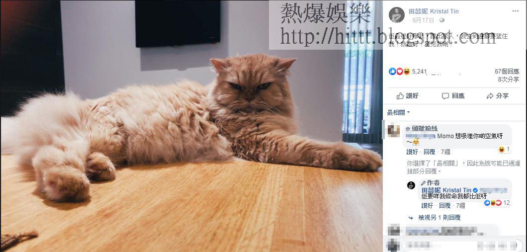 自從田蕊妮和杜汶澤養了愛貓Momo後,便正式成為「貓奴」一份子,即使阿澤平時說話經常「大聲夾惡」,但只要對着Momo迅即變慈父,阿澤和阿田亦經常貼Momo的相片上網,分享一家人的開心事。不過,今晨阿田忽然在社交平台,上載她抱着Momo的合照,並留言表示Momo已經離開,朋友及網民都感到十分震驚,紛紛留言送上安慰。