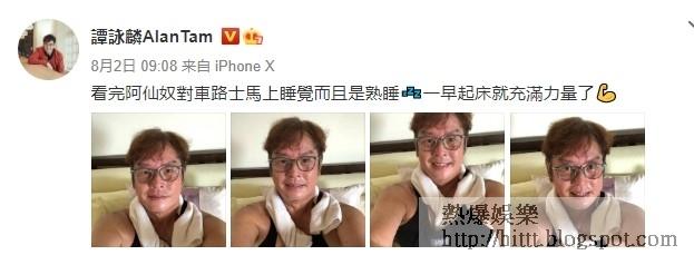 喜歡手執BNO去旅行但又很愛國的譚詠麟,放棄Facebook、Instagram之後,一心一意經營微博,瞓醒起身、落雨跑步、睇咩電視節目都要影相post一餐,而且蝦碌事不時發生。例如,昨晚佢睇ViuTV《Chill Club》,聽到《分手第二天》,隨即喺微博大讚:「衞蘭新歌,《分手第二天》旋律好輕快清新易上口!」